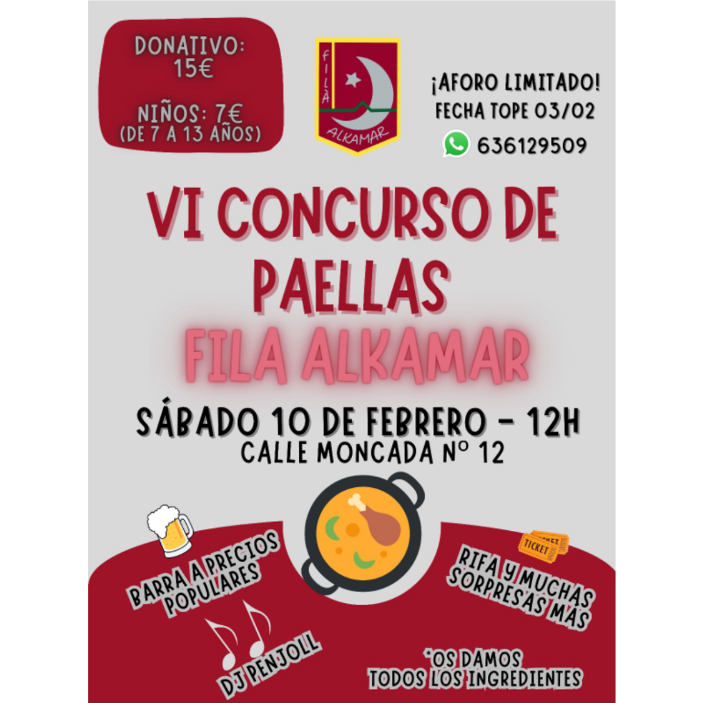 Este sábado, 10 de febrero, celebraremos nuestro VI Concurso de Paellas. Estamos encantados de anunciar que hemos alcanzado el aforo completo en poco tiempo. Sin embargo, ¡todavía queremos invitar a todos a unirse al ‘tardeo’!